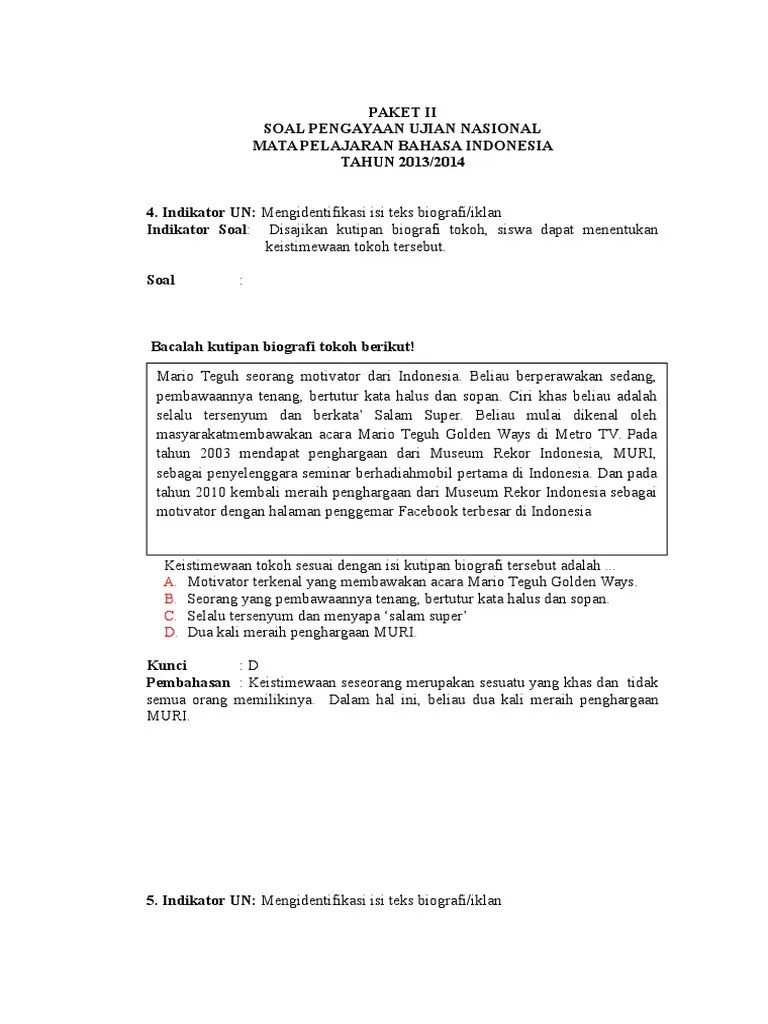 Berikut ini 15 contoh soal pilihan ganda tentang biografi bahasa indonesia dan jawabannya sma kelas 10 / x. Sekolah menengah atas negeri 78 . Berikut contoh teks biografi singkat. Terdapat 30 contoh soal pilihan ganda dan 5 soal esay yang berkaitan dengan materi teks biografi pelajaran . Berikut ini adalah biografi singkat seorang bapak sartono, pencipta lagu himne guru, sosok guru inspiratif yang luar biasa. Membaca teks biografi memang menarik, apalagi kamu juga bisa mendapatkan banyak pelajaran berharga dari tokoh yang diceritakan. Biografi adalah riwayat hidup yang ditulis oleh orang lain. Lupita aprilia x mipa f. Kumpulan soal pilihan ganda biografi tokoh. Soal teks biografi kelas 10. Harga murah di lapak m store. Sosok bj habibie dan sederet fakta soal bapak pesawat sosok bj habibie dan sederet fakta soal 'bapak. Beli 365 soal jawab sirah nabawiyah.