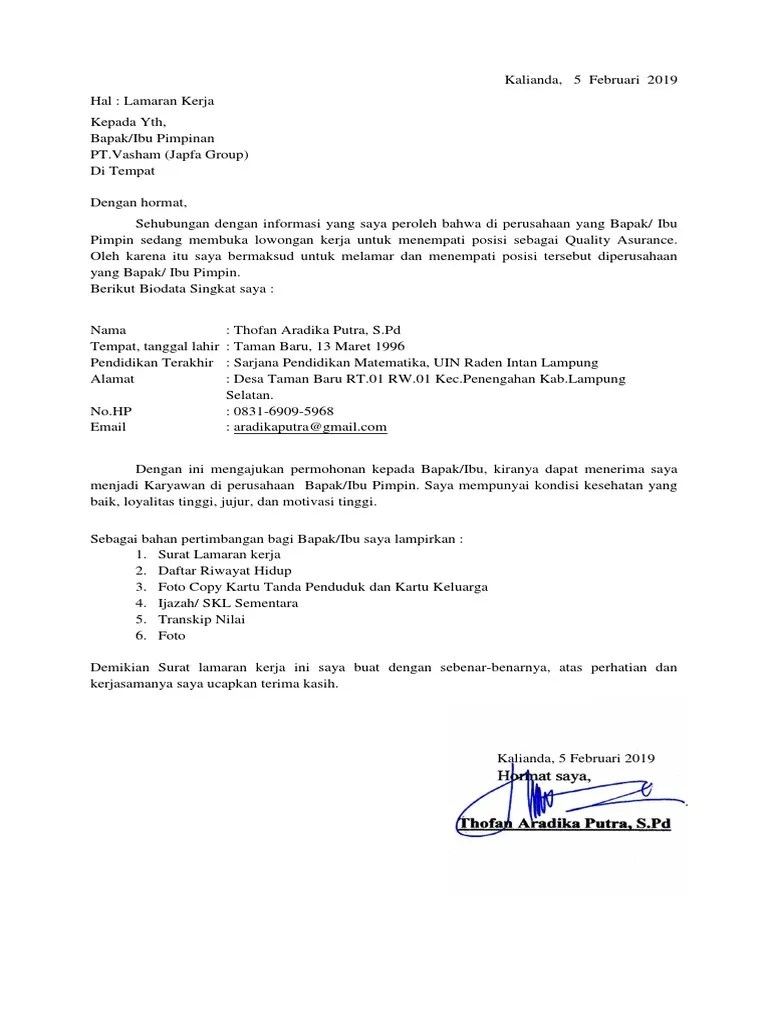 Contoh Lamaran Kerja Japfa : Contoh Surat Lamaran Kerja Operator Produksi Python / Arsip iklan lowongan pekerjaan adalah iklan lowongan yang oleh admin diasumsikan sudah tidak berlaku lagi (kedaluwarsa), karena tidak diupdate oleh .. Penutupan lowongan kerja di pt japfa comfeed indonesia pada tanggal 20 mei 2021. Menulis surat lamaran kerja yang baik dan benar dapat memberi kesan bagi perusahaan sehingga meningkatkan potensi pelamar. Contoh surat lamaran kerja di pt japfa comfeed indonesia tbk yang benar · pas foto ukuran 4 x 6 1 lembar · fotocopy ijazah 1 lembar · foto copy ktp . Sibaganding dengan hormat, yang bertanda tangan di bawah ini : Surat lamaran pekerjaan (surat lamaran kerja berdasarkan inisiatif.